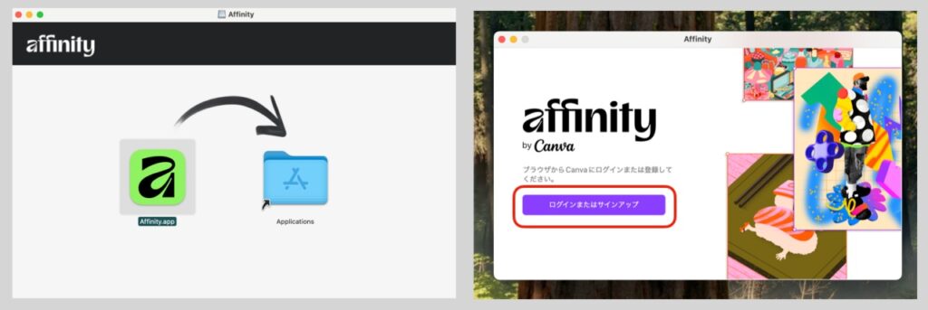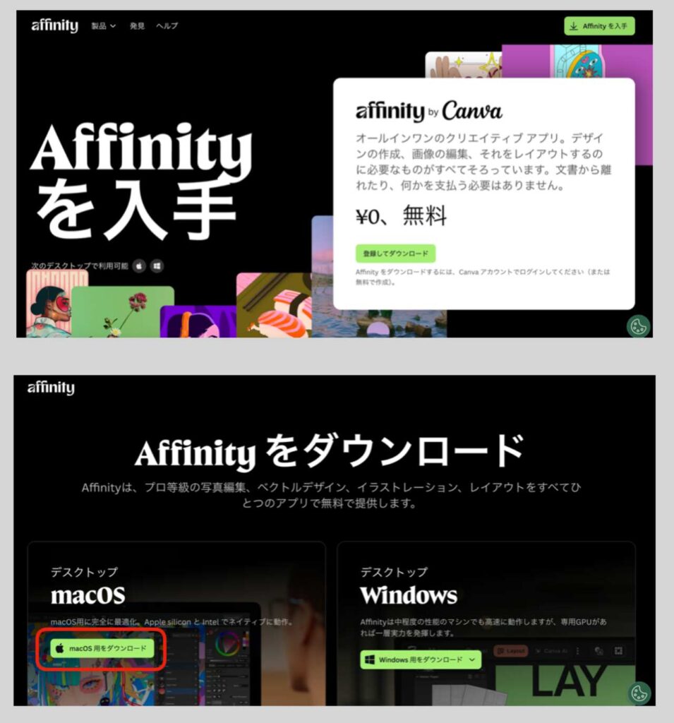 - 「Affinityを入手」をクリック