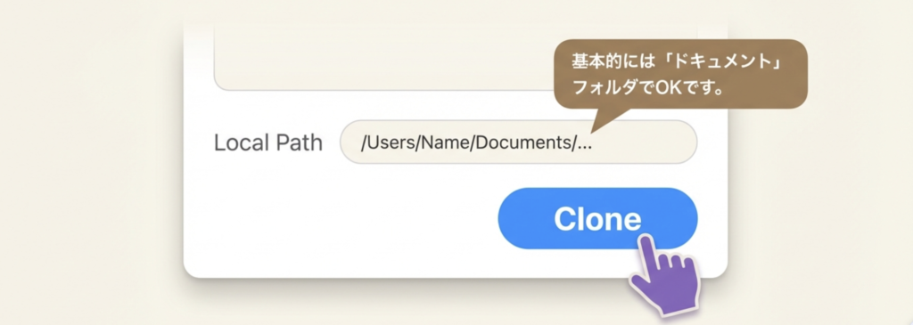 ステップ3:保存場所を決めて「Clone」!