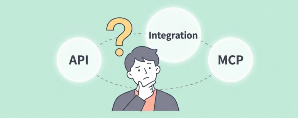 「MCPって、APIと何が違うの?」という疑問を持つ方も多いと思います。どちらもアプリ同士をつなぐ仕組みですが、目的とアプローチが根本的に異なります。